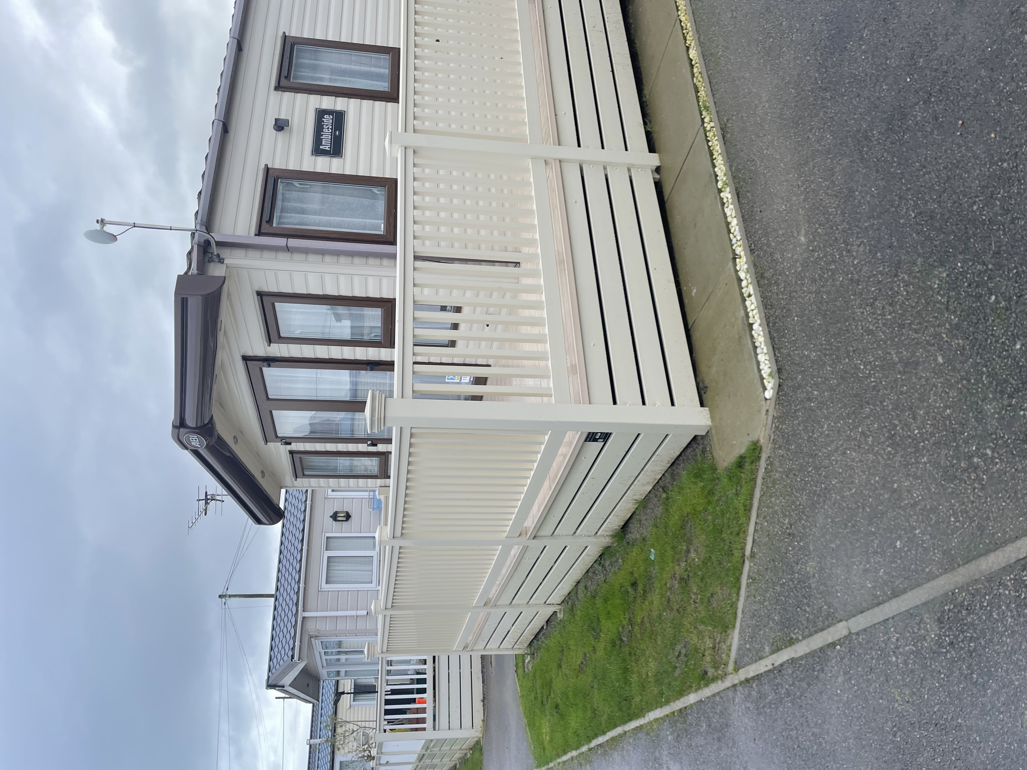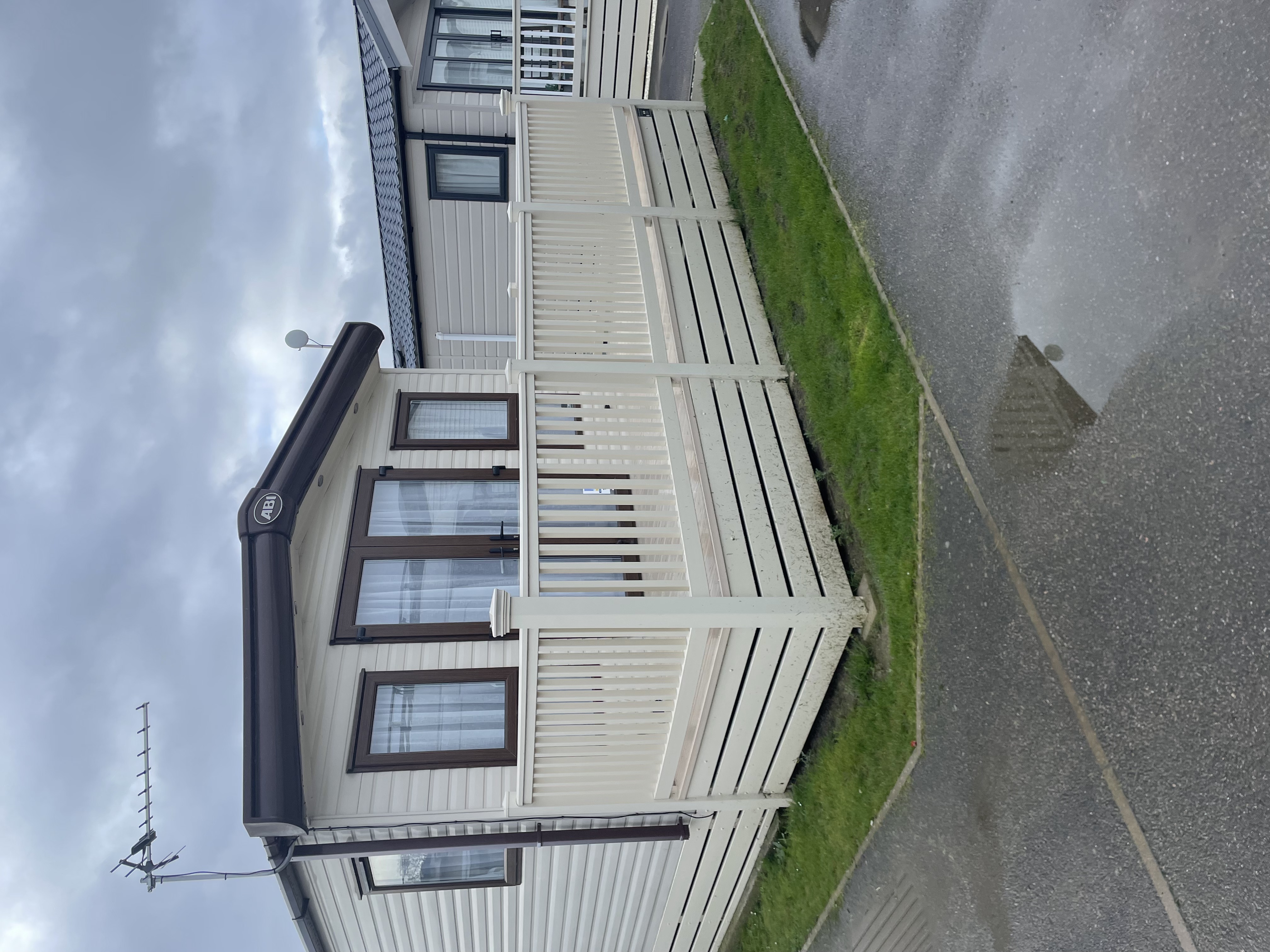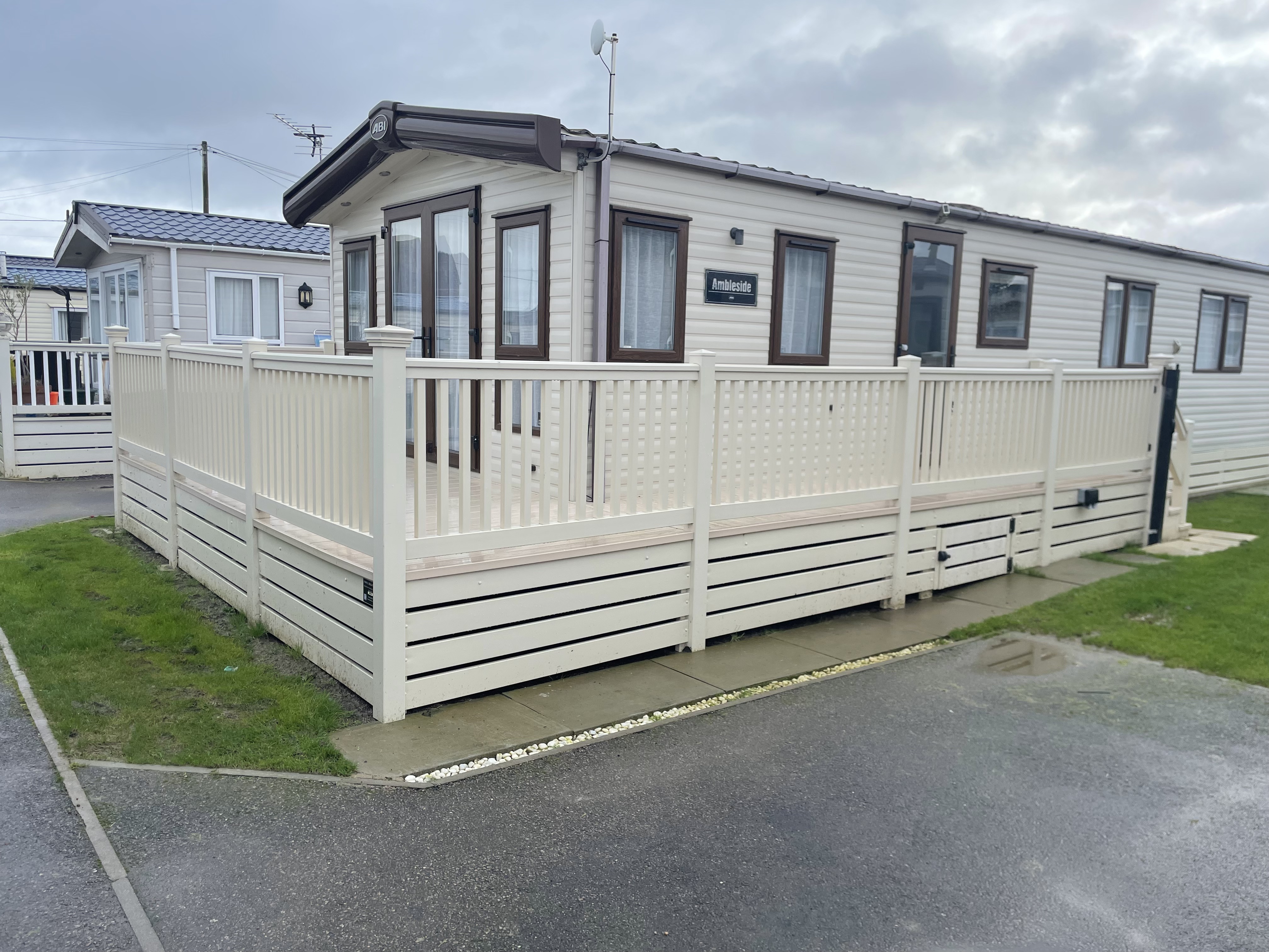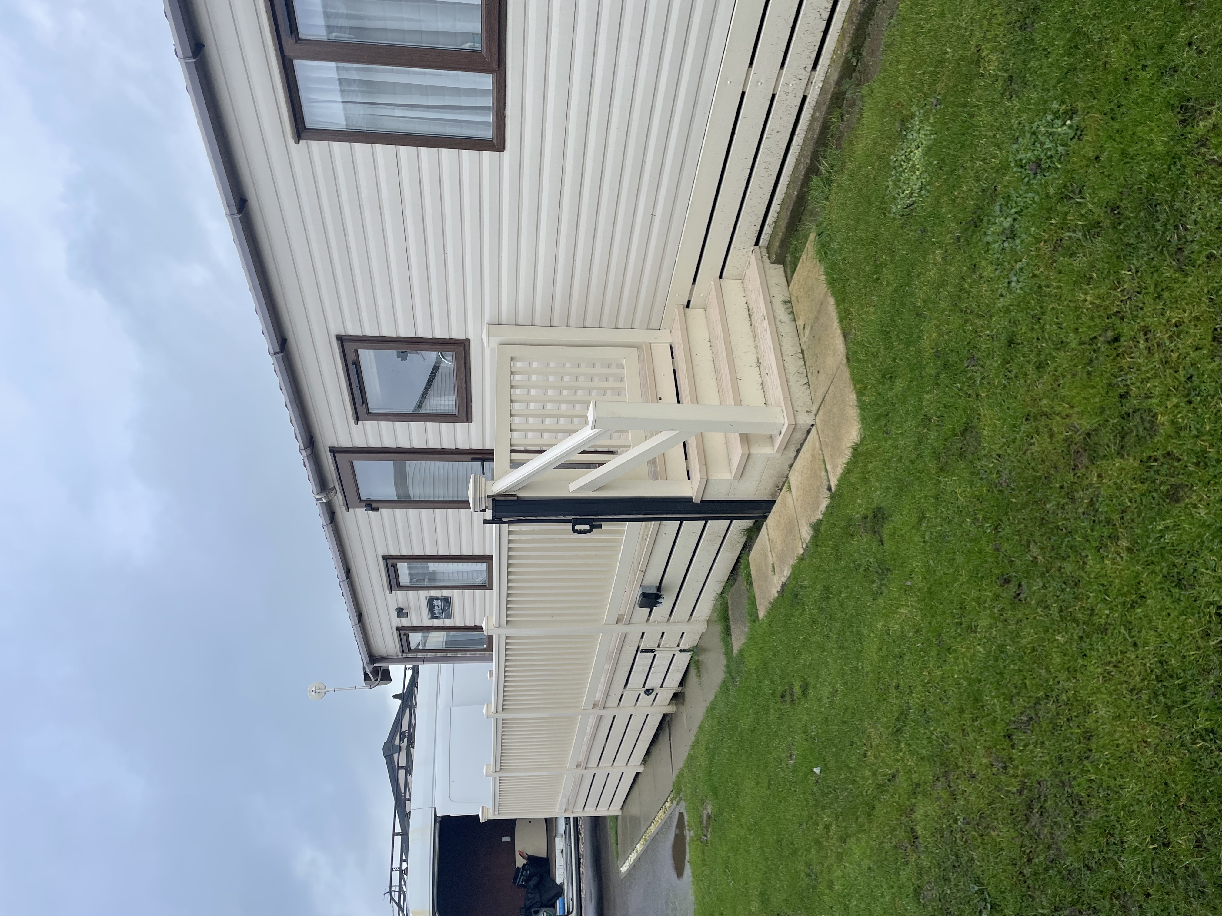 ONLY 1 YEAR OLD This deck front is 17ft x 6ft with a 18ft x 4ft walkway steps and a gate all cream and comes with a ranch skirt
