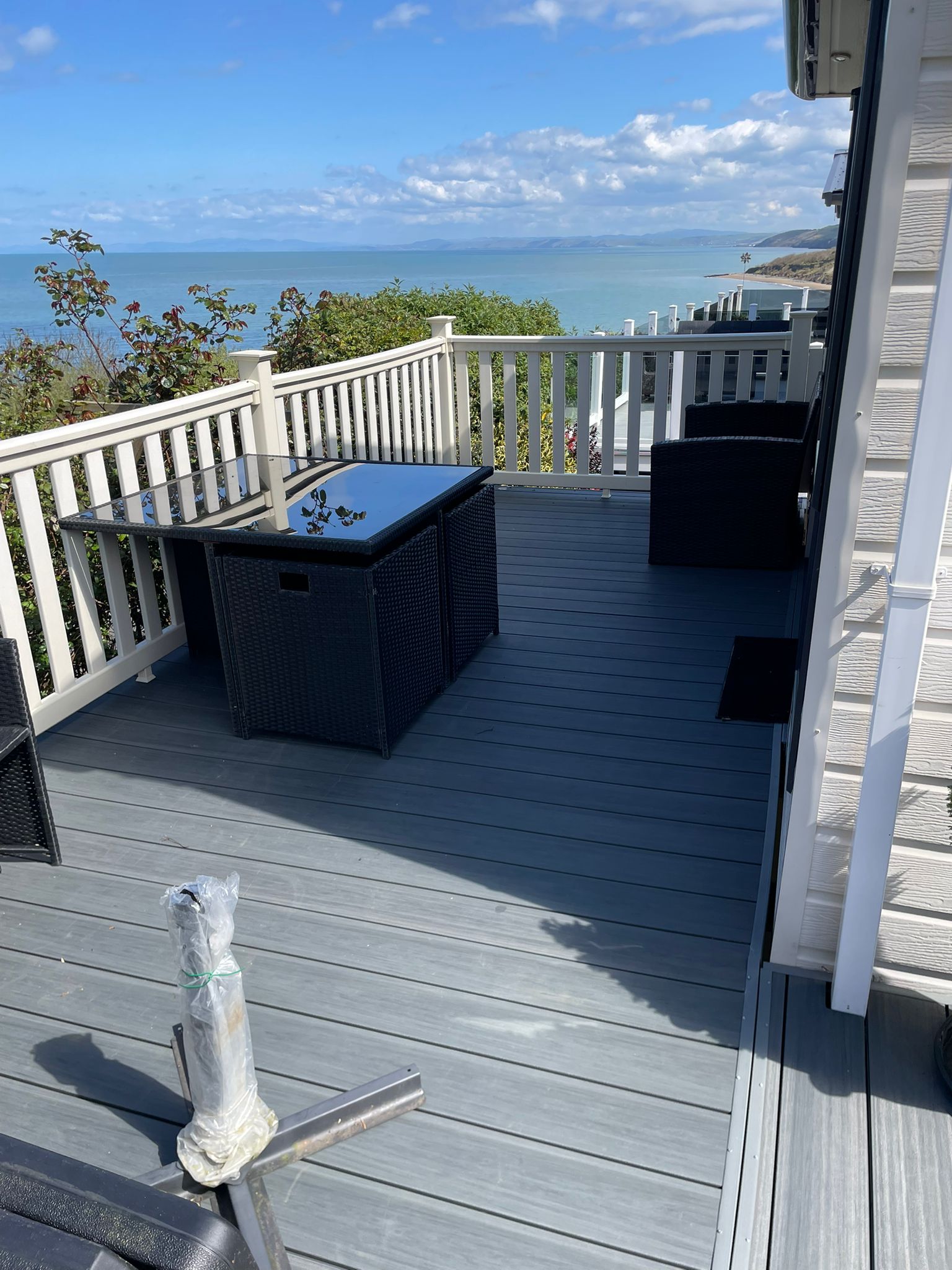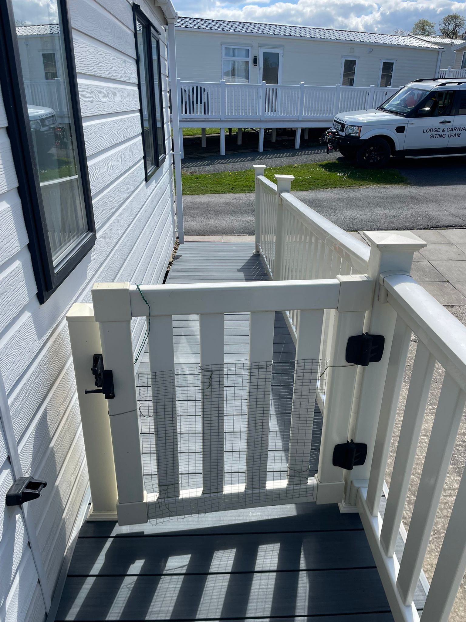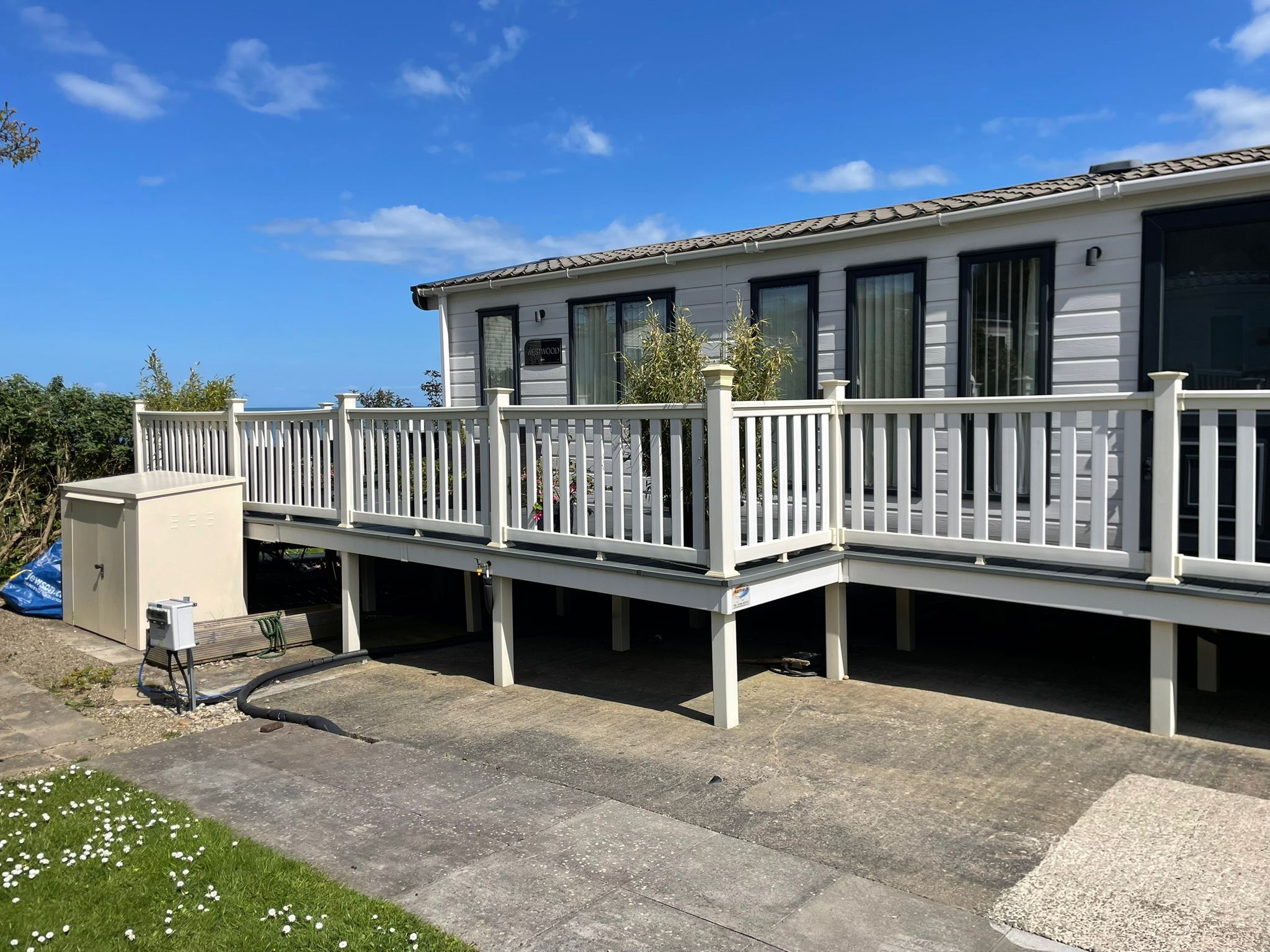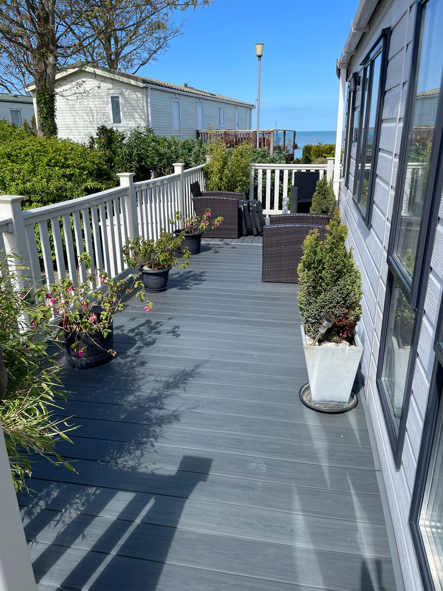 Size: Front 22ft x 8ft side sundeck 19ft x 8ft leading down onto the walkway 11ft x 4ft then onto a ramp 17ft x 4ft with a gate at the top of the ramp