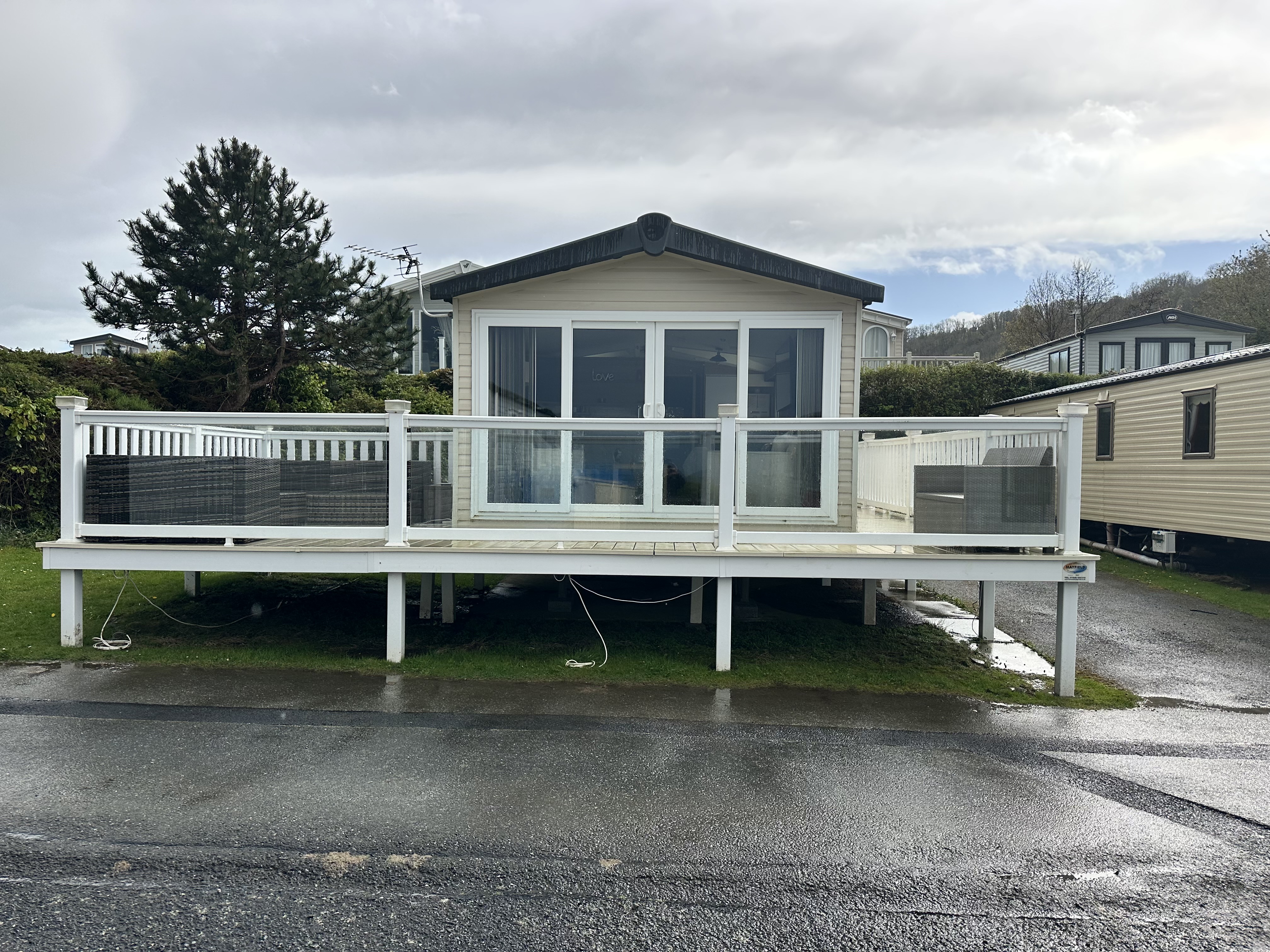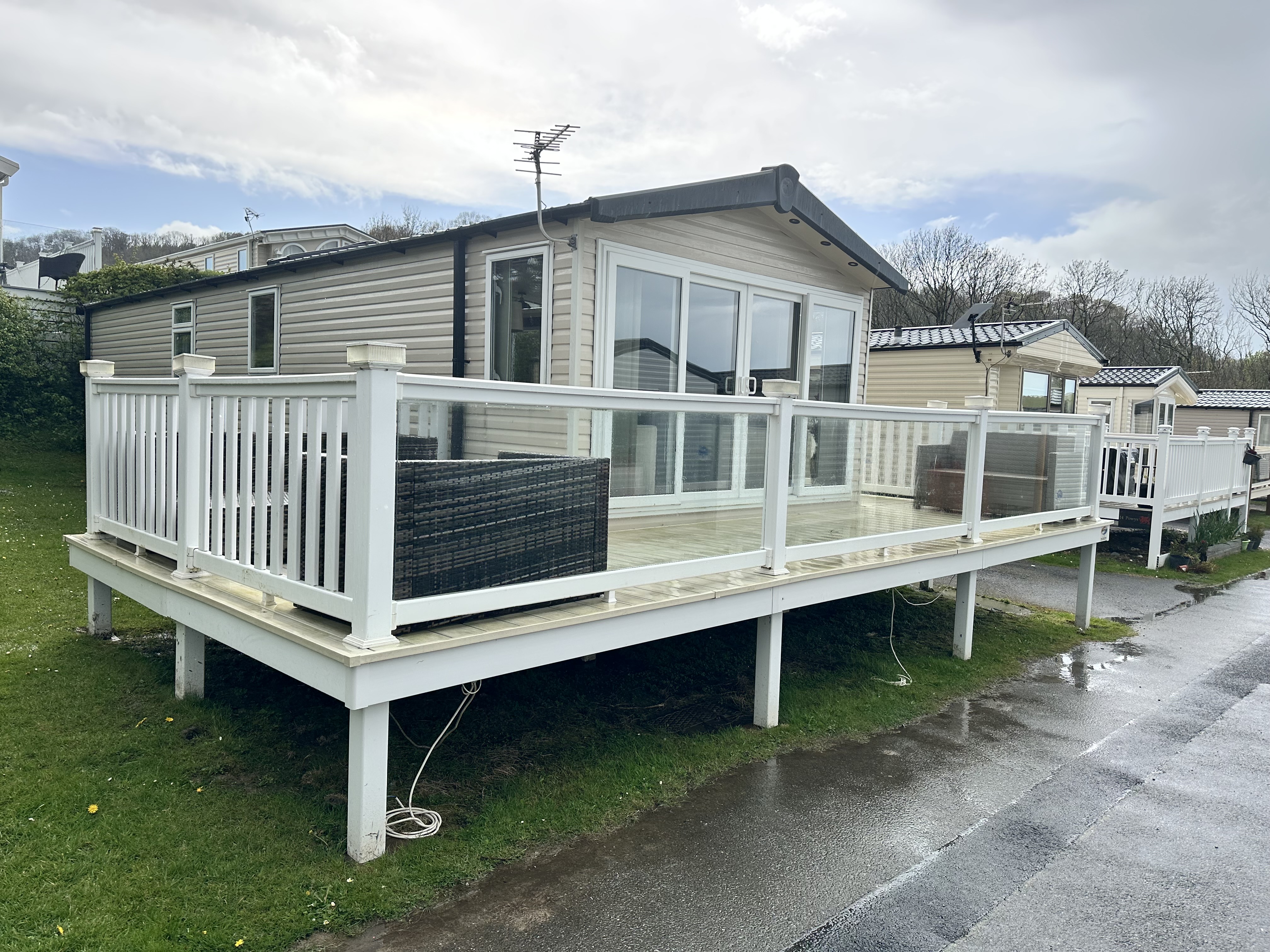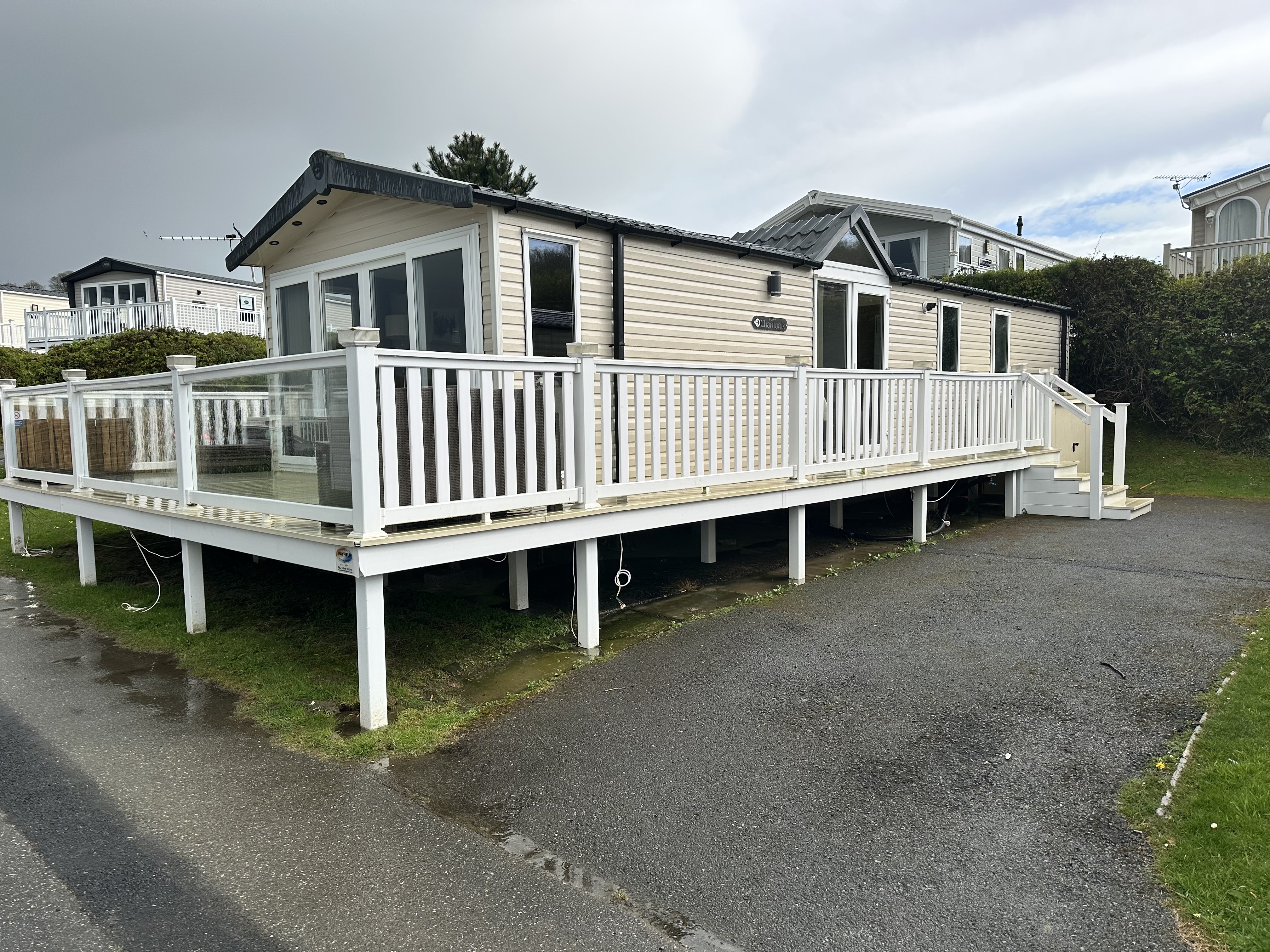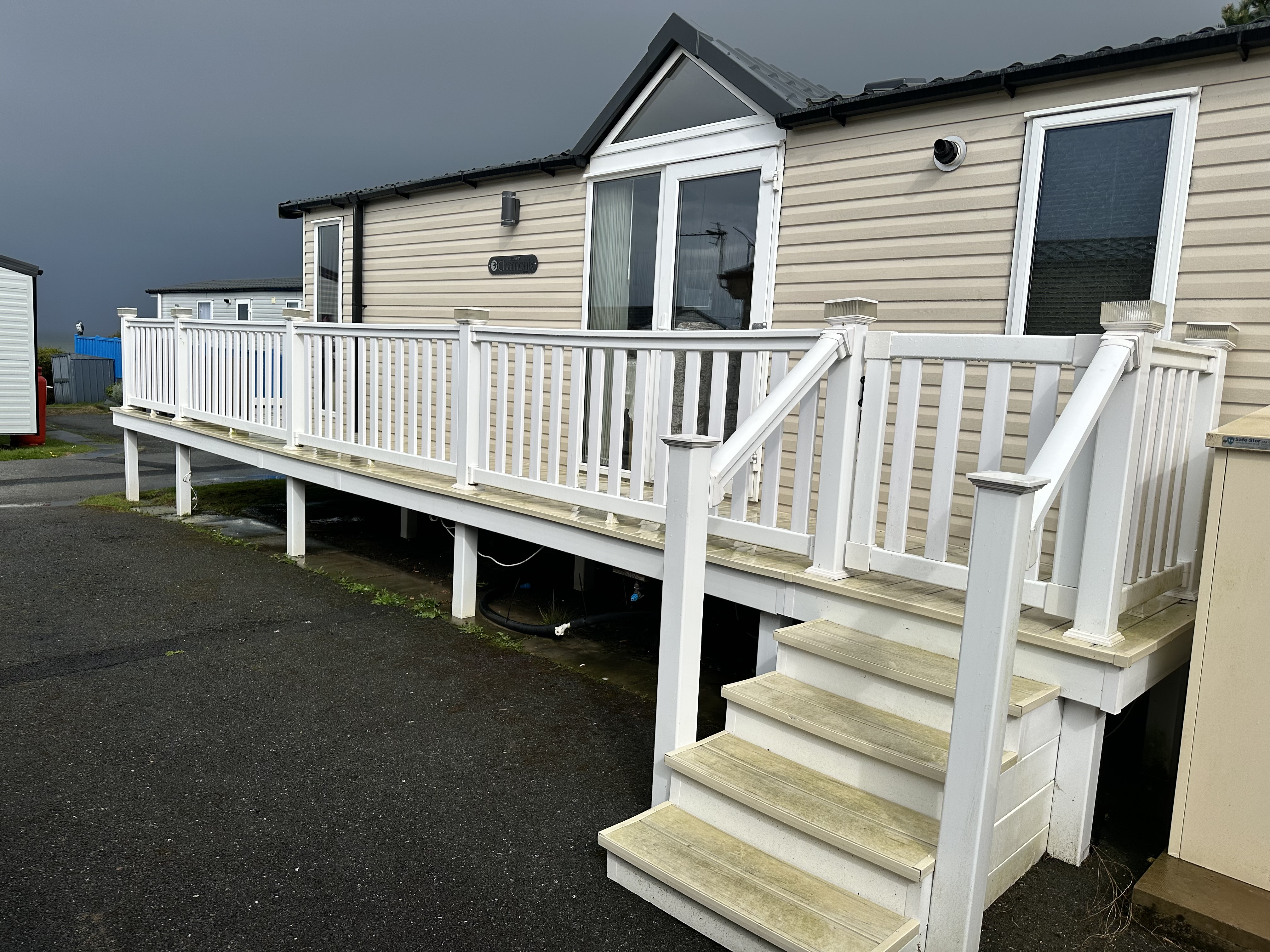 Colours: White with a cream deck boards with glass panels